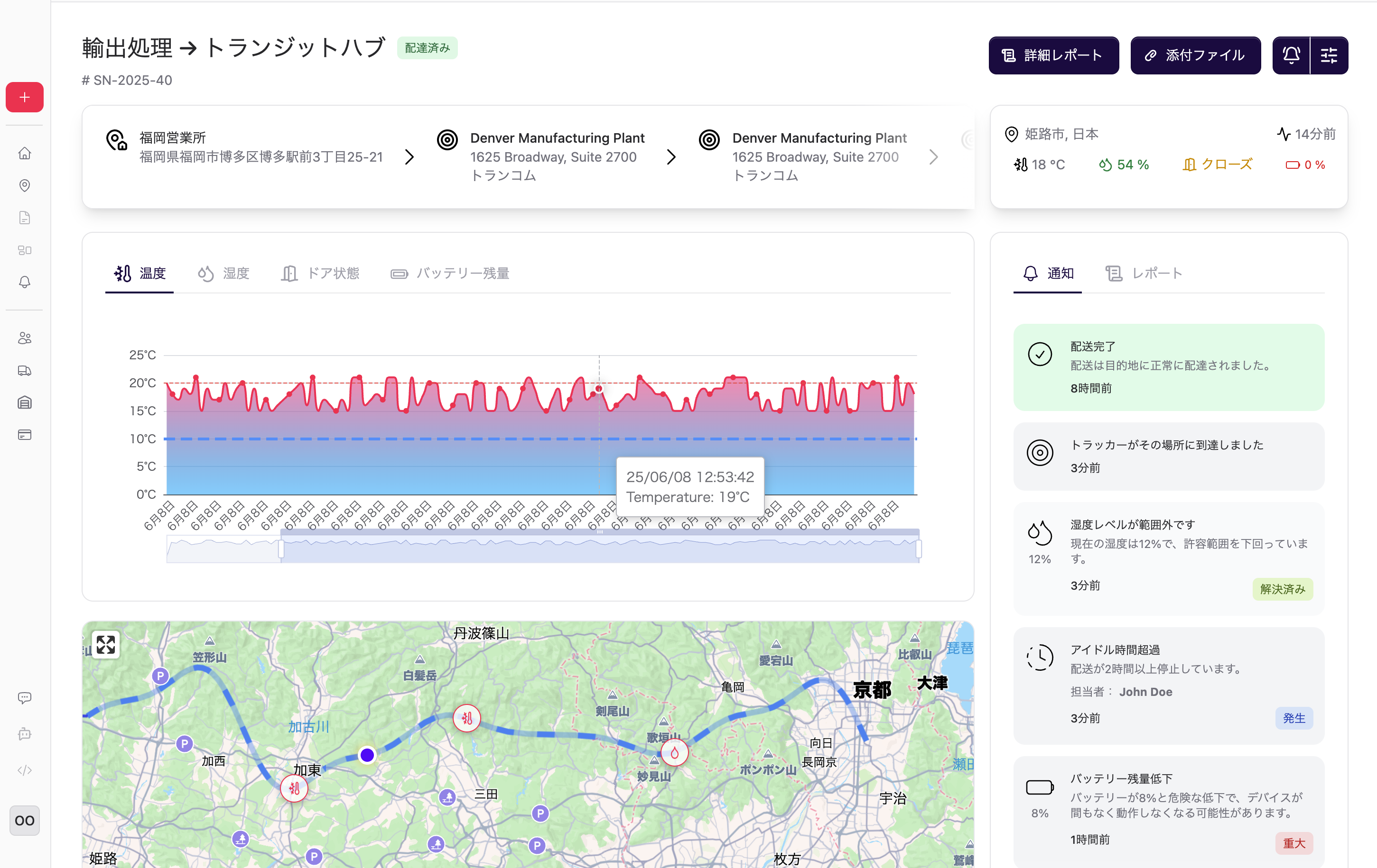 Our integrated system combines state-of-the-art IoT sensors with a powerful software platform, giving you a complete picture of your shipment's journey.